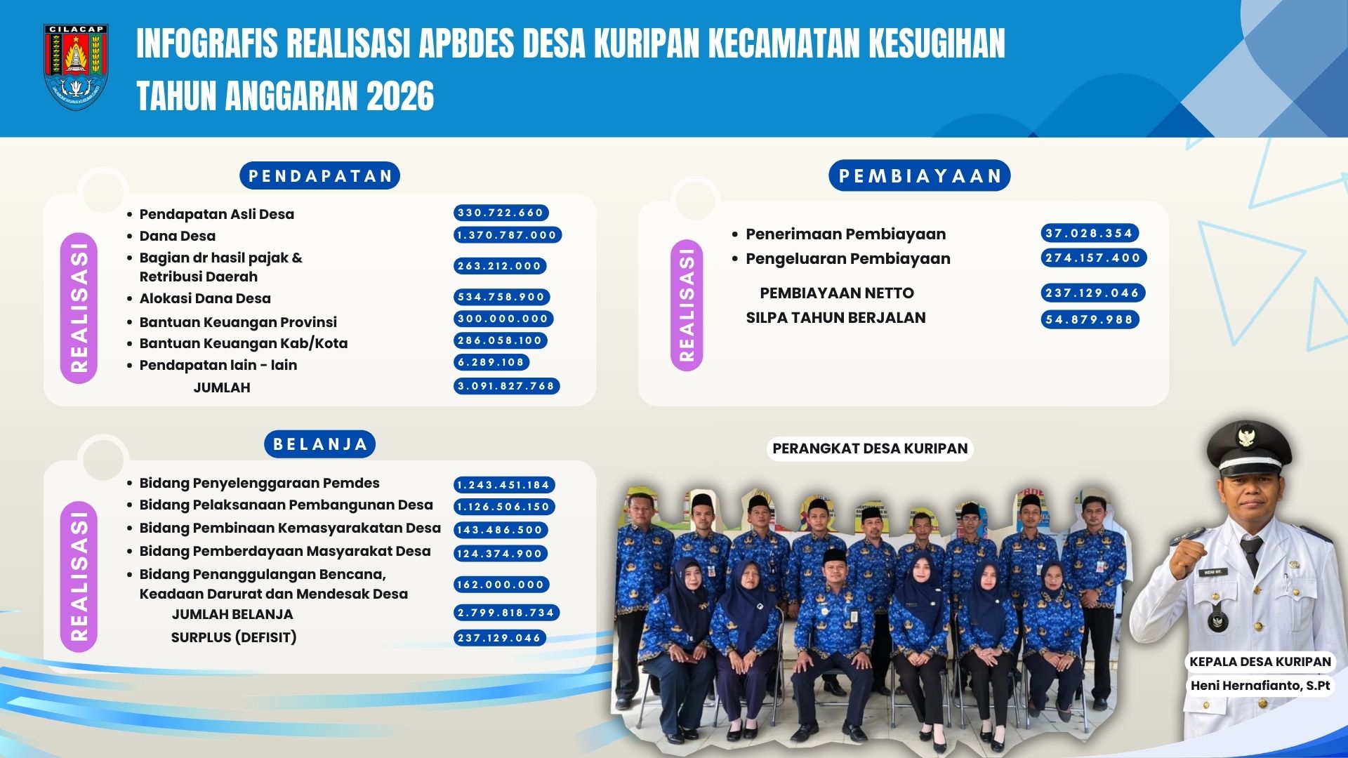 Pemerintah Desa Kuripan berkomitmen penuh melayani masyarakat guna menjadikan desa yang mandiri dan terus bertumbuh bersama dengan masyarakat.